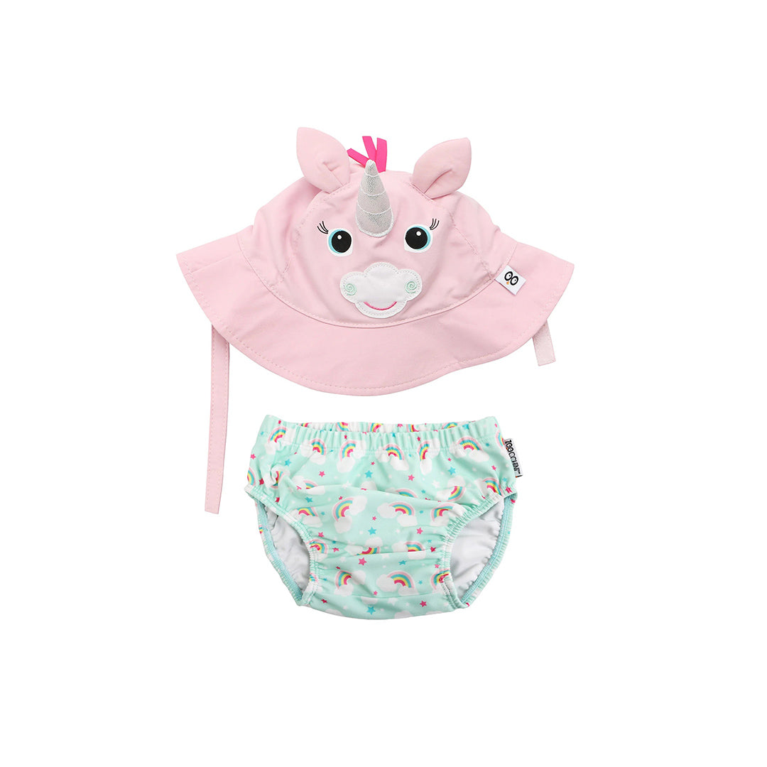 Zoocchini Reusable Swim Diaper & Sun Hat Set | Upf 50+ Baby Swimwear