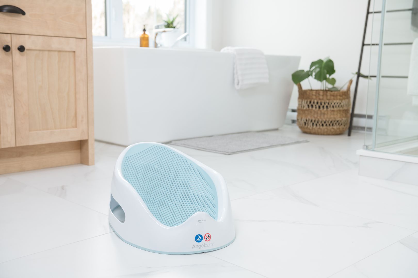 The soft TPE material does not only mould comfortably around your baby, but also takes up the bath water’s temperature very quickly, which makes your baby feel warm and safe. The Angelcare Soft-Touch Bath Support has a water level indicator for optimal safety in the bath.