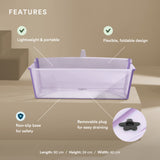 Wide and spacious, Stokke® Flexi Bath® X-Large is a bath tub that grows with your little one. Suitable for growing babies and young children until about age 6, it has all of the great features of our original version only with more room. The unique foldable design makes it easy to fold flat for storage or travel. Though it is generous enough for sibling to comfortably share bath time moments, rest assured, it still fits most bath tubs and showers. Great for indoor or outdoor use, this strong and sturdy bath tub is perfect for older toddlers who love to splash and play. For added safety and convenience, it includes a non-slip base and heat sensitive plug for easy draining.