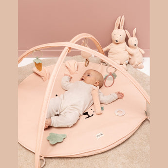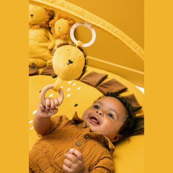 Discover endless playtime adventures with our Activity Play Mat featuring Mr. Lion, Mr. Dino, and Mrs. Rabbit. Crafted from organic cotton and recycled polyester, this eco-friendly mat includes engaging toys like a teether, mirror, and rattle to stimulate your baby's senses. Perfect for infants 3 months and older, it offers a sensory-rich environment for tactile development. Easy to clean and maintain, this play mat is a delightful addition to any nursery.