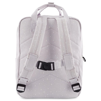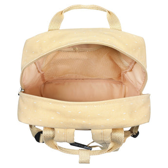 Let's go, it's time to start the day! This roomy backpack has space for everything your toddler one needs. It's big enough for A4 books and files, with a padded ergonomic back panel, adjustable shoulder straps and a chest strap for comfy wear. Thoughtful little features include a name tag, an A4 holder and zipped mesh pocket on the inside. On the outside you'll find a zipped front pocket, pockets on each side for water bottles and snacks, reflective details for safety and top handles for easy carrying. There’s even a little animal tail on the zip pull to bring a smile to every kiddo's face.