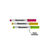 The Discovery™ Neon Glow Tablet Light-Up Art Board is an educational STEM toy designed for children aged 4 and up. This neon glow drawing tablet features built-in marker storage and eight dazzling light effects, allowing kids to create and display glowing art or messages using the flip-out kickstand. The complete set includes three neon markers, making it perfect for inspiring creativity and learning through play.