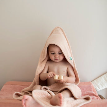Hooded towel by Trixie, made from 100% organic cotton with a soft terry texture and cozy filling. Designed for babies from birth, it’s perfect for wrapping your little one after bath time, keeping them warm and comfortable while extending those special bonding moments.