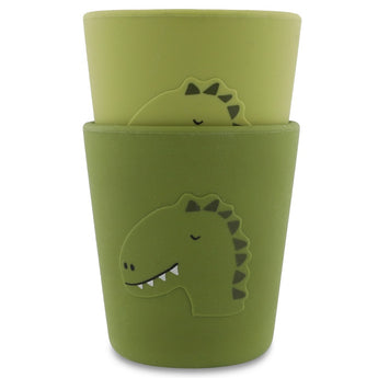 A fun colourful duo of cups. Each cup features an animal friend that cannot wait to share a meal with your little one. These cups are the perfect size for little hands to hold. The cups are also stackable for easy storage. Silicone is great for use in the kitchen. It does not break and is safe to use in the microwave, dishwasher, freezer and oven. Even with intensive use, the tableware will stay in good shape and can easily be passed down to little brothers, sisters or friends. The 100% food grade silicone complies with all European safety standards.
