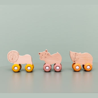 Wooden Animal Cars With Silicone Wheels