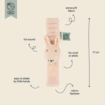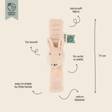 Delight your baby with our eco-friendly wrist rattle collection, featuring Mr. Fox, Mrs. Elephant, Mr. Lion, Mr. Dino, and Mrs. Rabbit. Crafted from organic cotton and recycled polyester, these rattles offer a symphony of sounds and tactile exploration. Lightweight and comfortable, they are perfect for infants from 0 months and up. Easy to clean and designed for endless fun, these wrist rattles are a charming addition to any nursery.