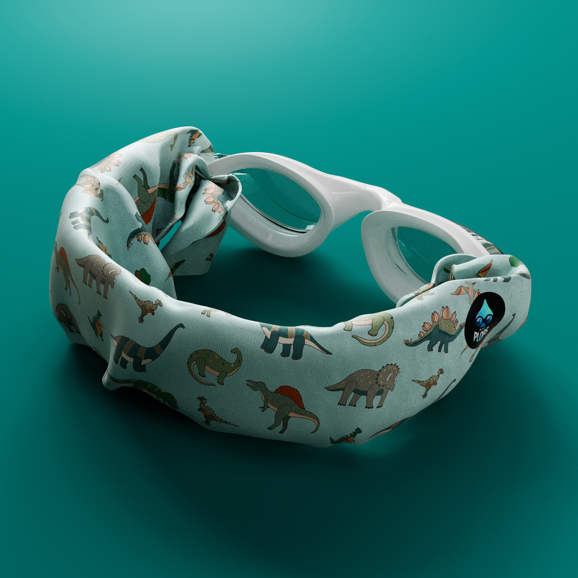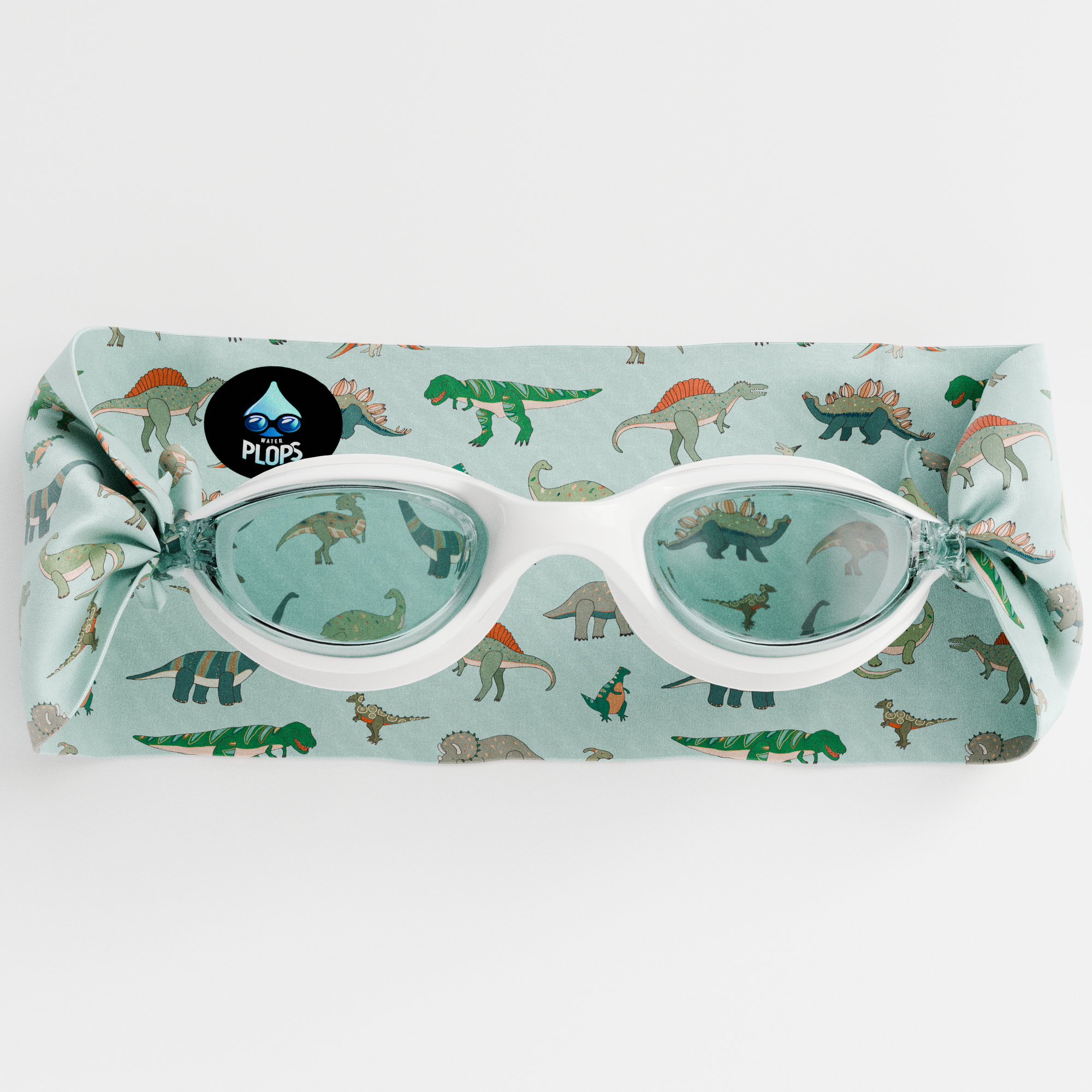 Waterplops White Junior Swimming Goggles Ultra Soft Band With Green Dinosaurs | Swim Accessories