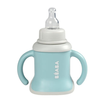 3-In-1 evolutive training cup: bottle, sippy cup and cup.