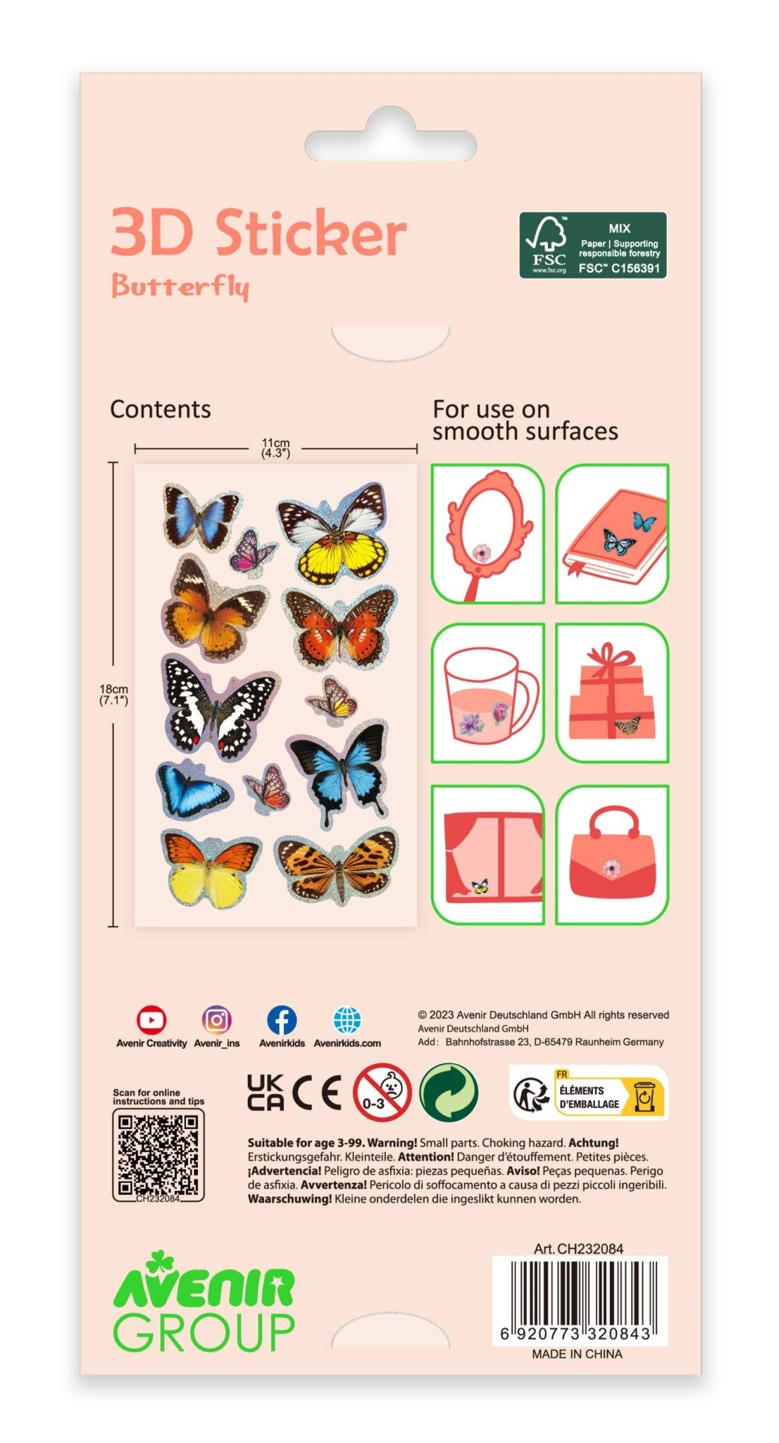 Avenir - 3D Stickers 10 pack - Butterfly Multicolour | These beautiful and realistic-looking 3D stickers pop out to showcase a gorgeous collection. | ages 3+