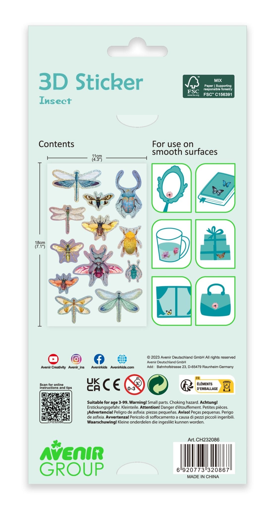 Pop-up fun! The Avenir 3D Stickers 10 Pack features whimsical, textured designs that add dimension to any craft project. Avenir designed these eye-catching stickers for creative kids who love decorating notebooks, cards and artwork. This Avenir set is a fun, easy way to enhance crafts with 3D magic.
