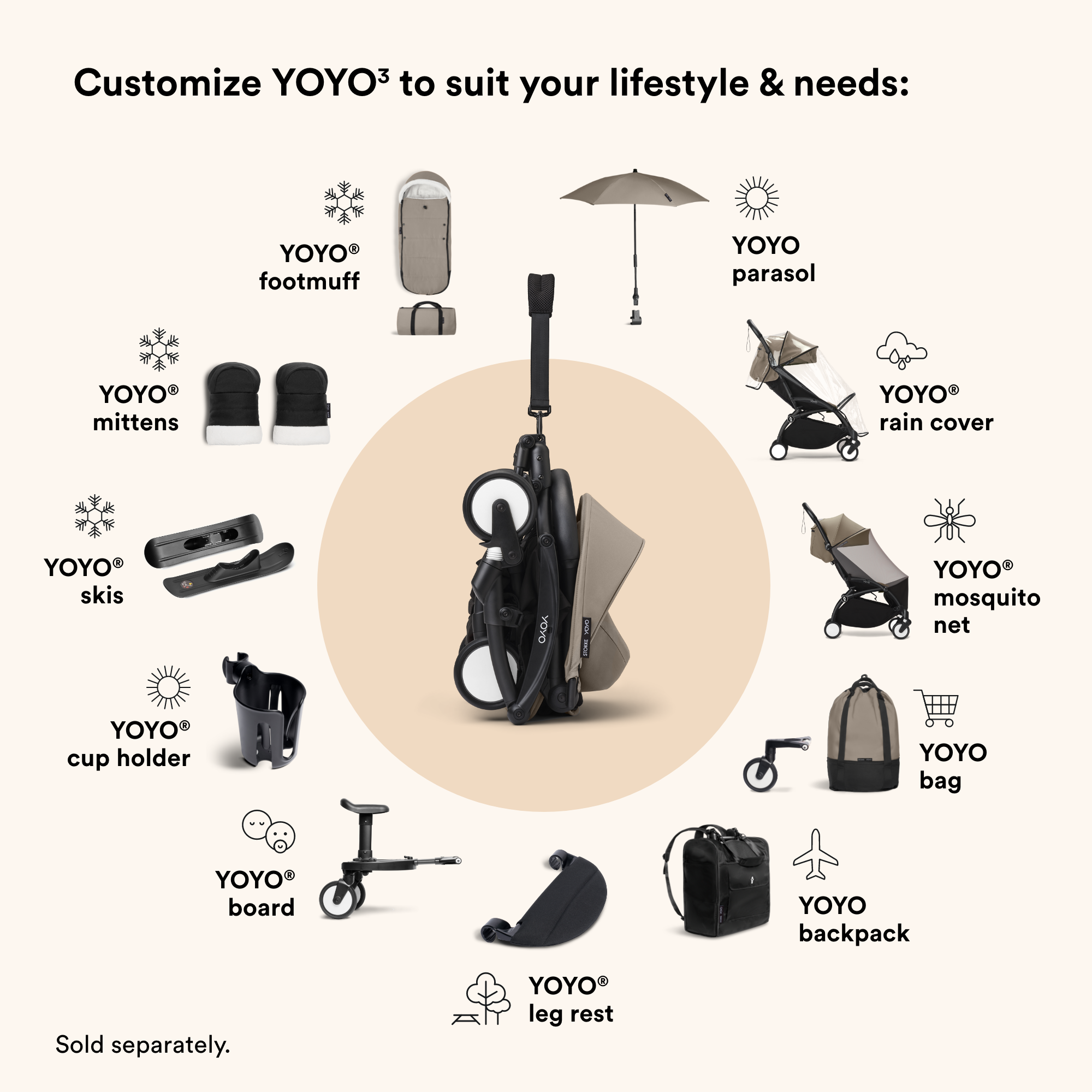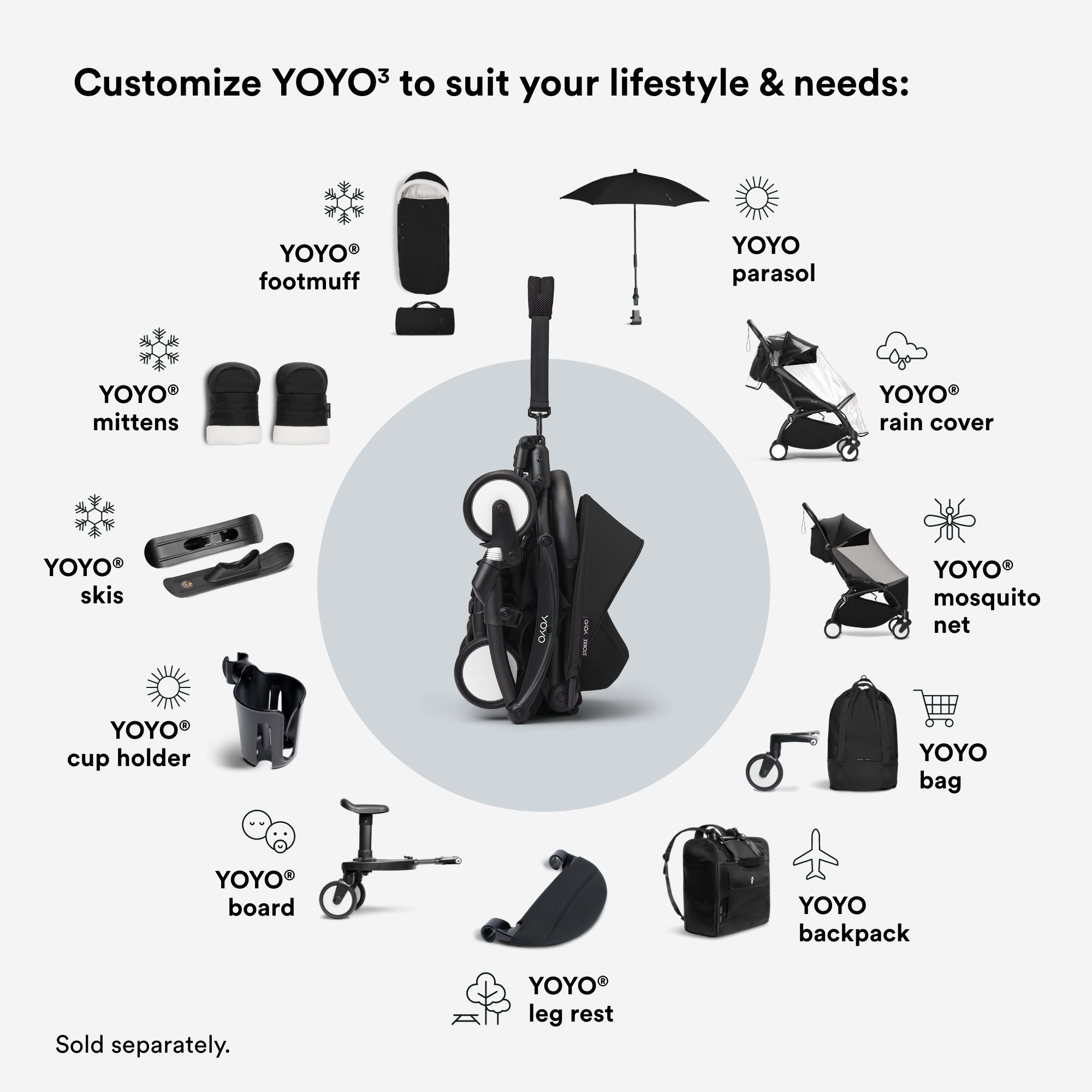Quick view StokkeStokke YOYO3 Black frame with 0+ & 6+ Pack Bundle Award-Winning Compact Baby Stroller From 3,667.00 AED /BlackOliveAir FranceAquaToffeeGingerStoneTaupe8 colors -