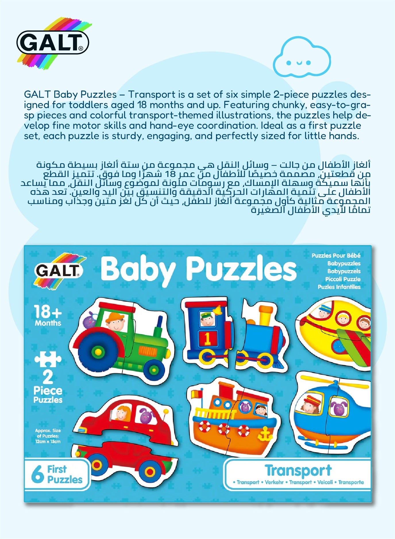 🌟 Ideal for Young Learners: This "Baby Puzzle - Transport" set is perfect for toddlers aged 18 months and up. It features vibrant, transport-themed puzzles that spark creativity.