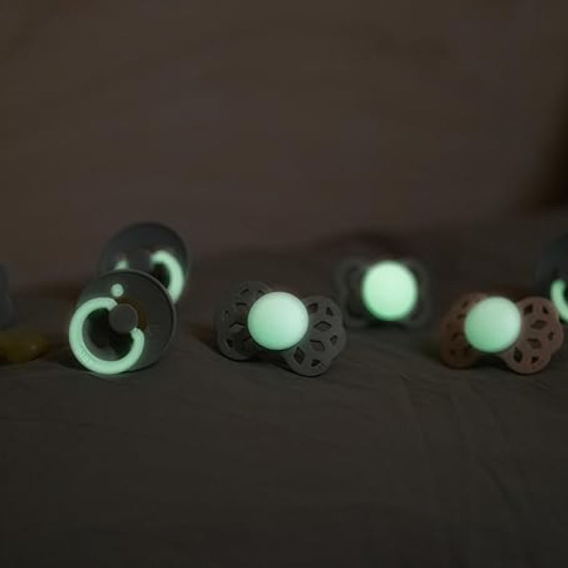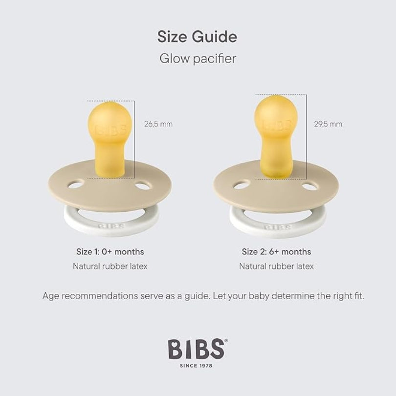 BIBS Colour Latex Anatomical Glow Pacifiers 2 PACK