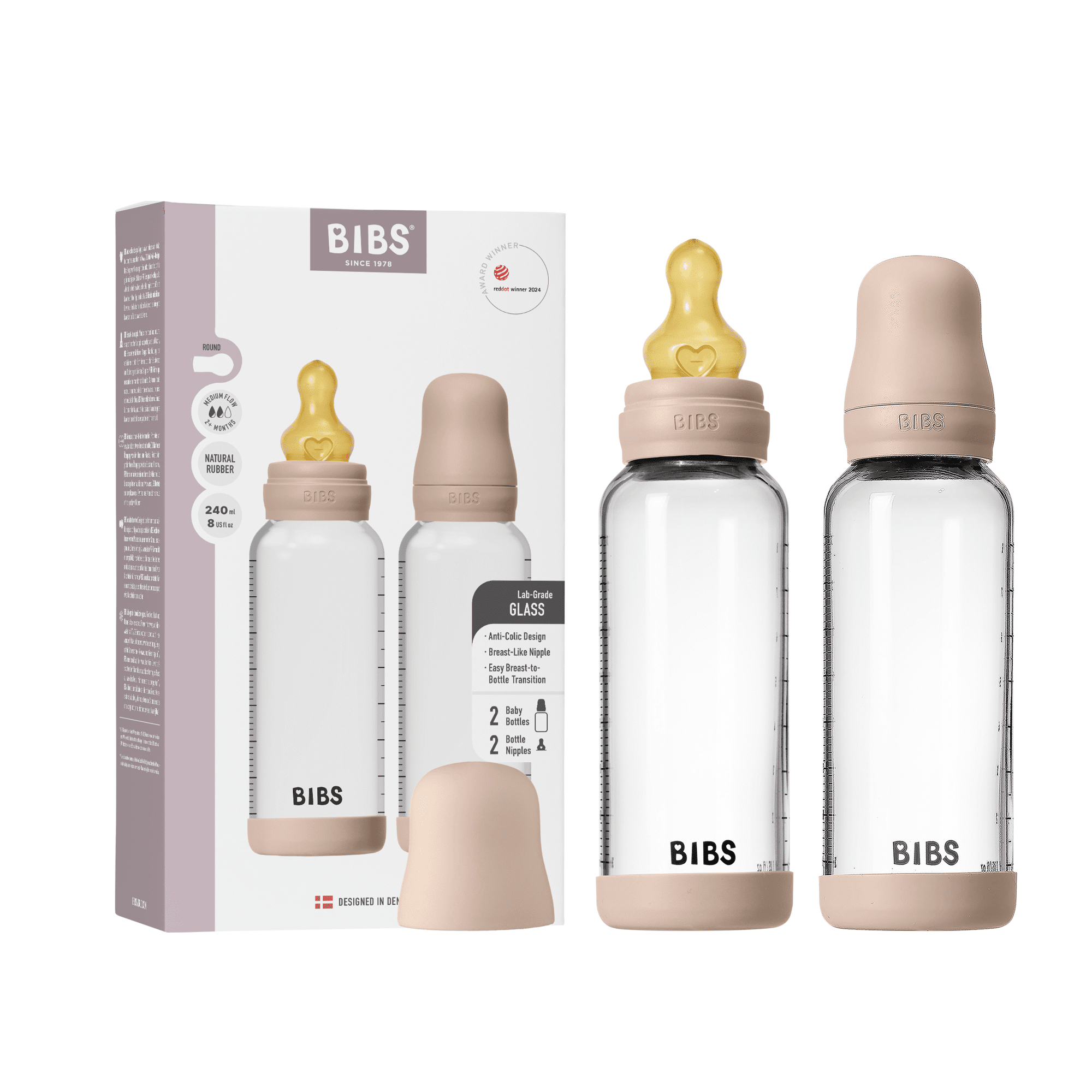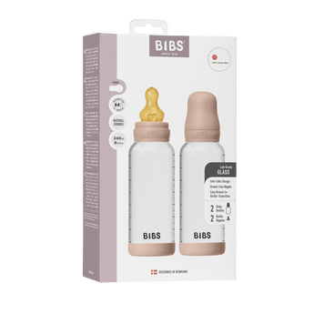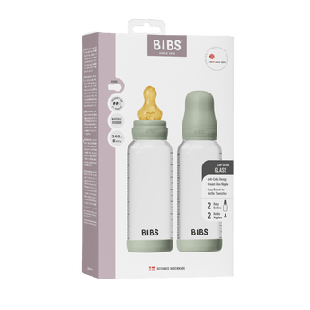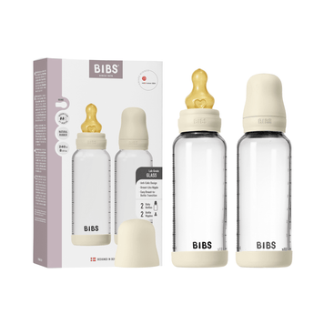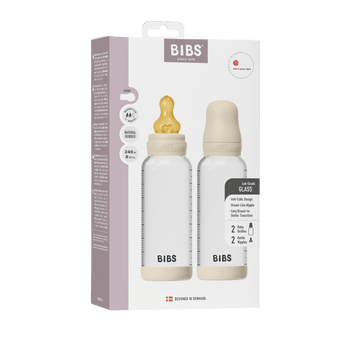 Premium glass duo! The BIBS Glass Baby Bottle 2 Pack features 240ml bottles with round latex nipples and medium flow. BIBS designed this set for families who prefer pure glass feeding over plastic. This BIBS duo provides two premium glass bottles for safe, chemical-free feeding every day.