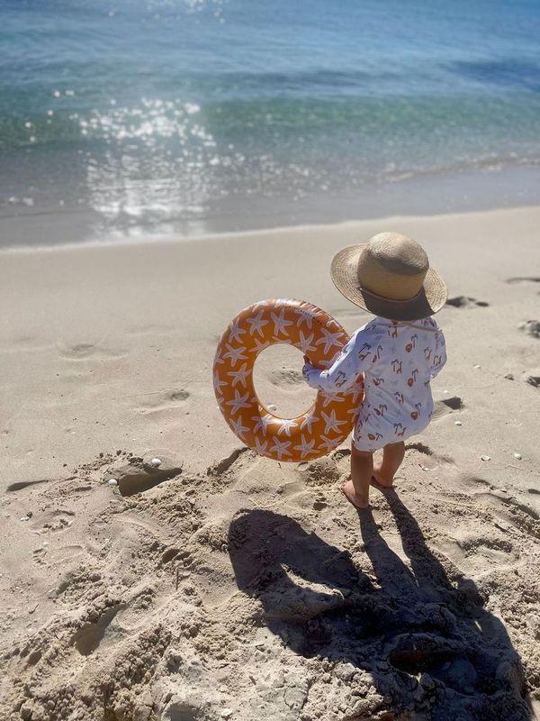 A chic baby rashguard swimsuit for parents of little ones learning to love the water, with full UPF50+ sun protection and soft, stretch fabric for comfy, flexible splash-and-play—plus snap closures for easy dressing and diaper changes.