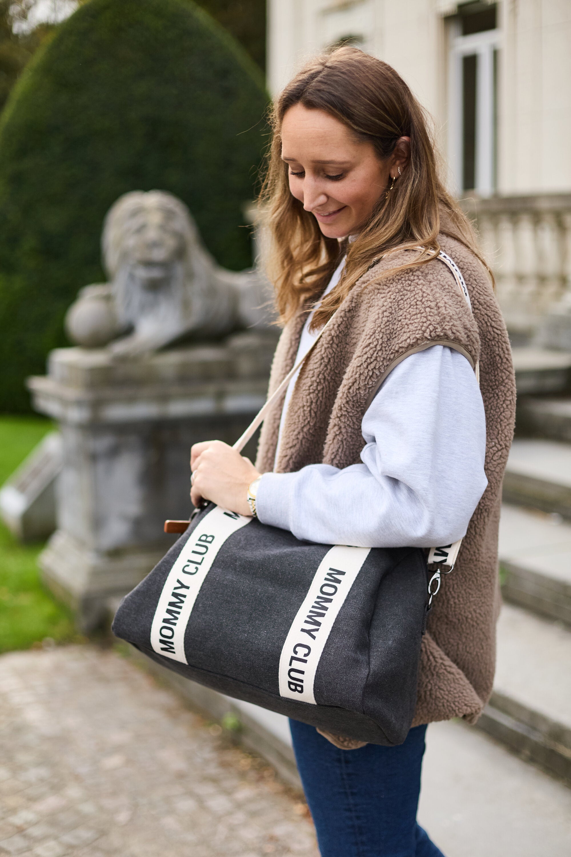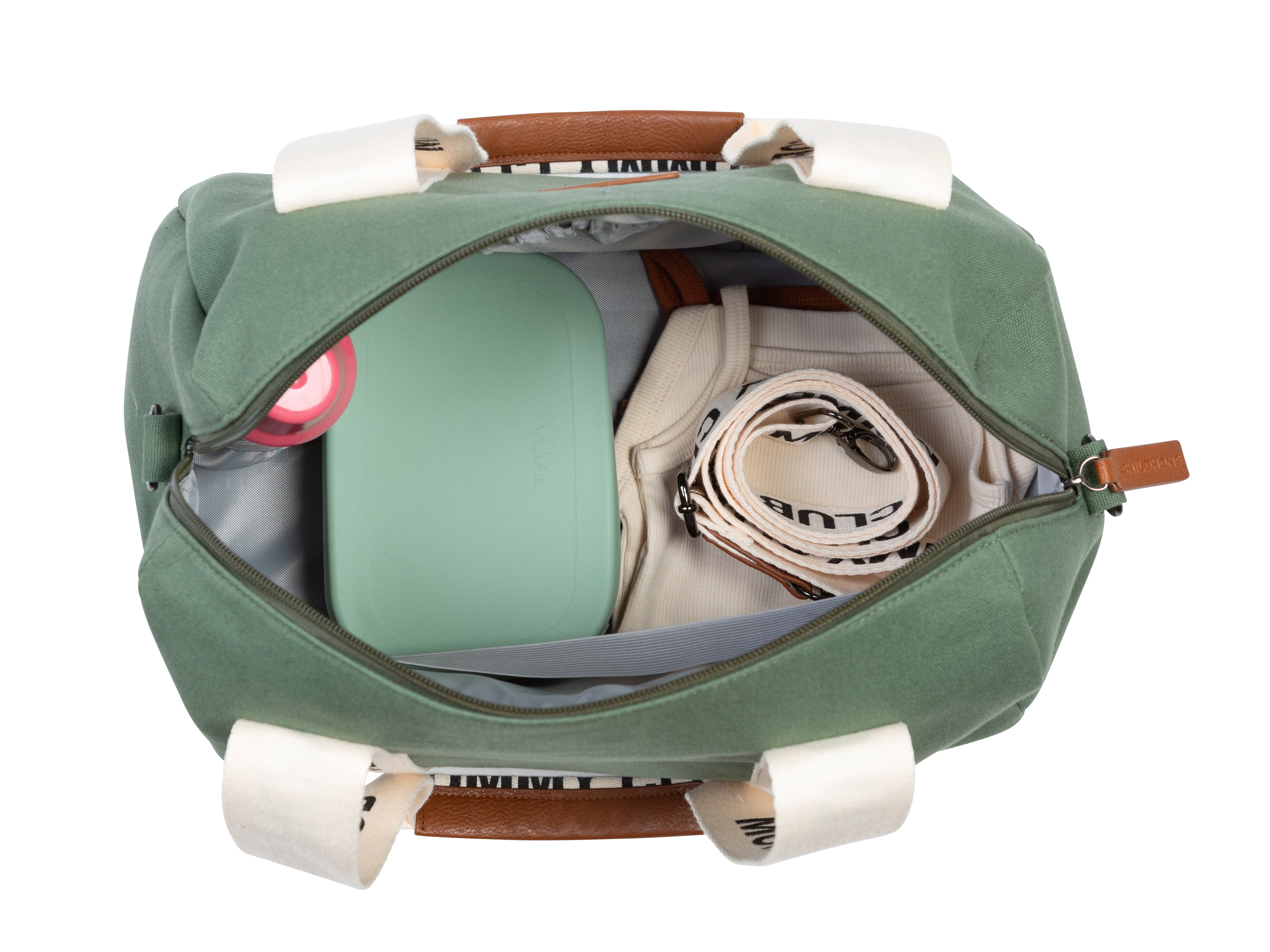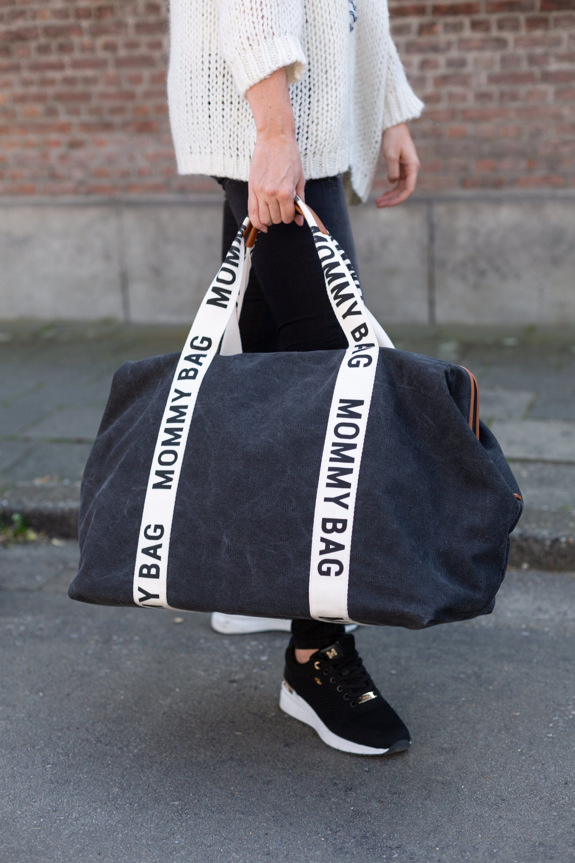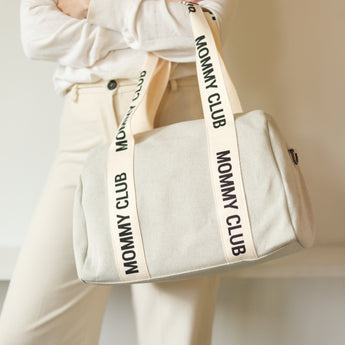 The Childhome Mommy Club Signature canvas bag is a stylish essential for active parents. This practical diaper bag offers an organized solution for carrying daily necessities, ensuring you are prepared for every outing with your little one.