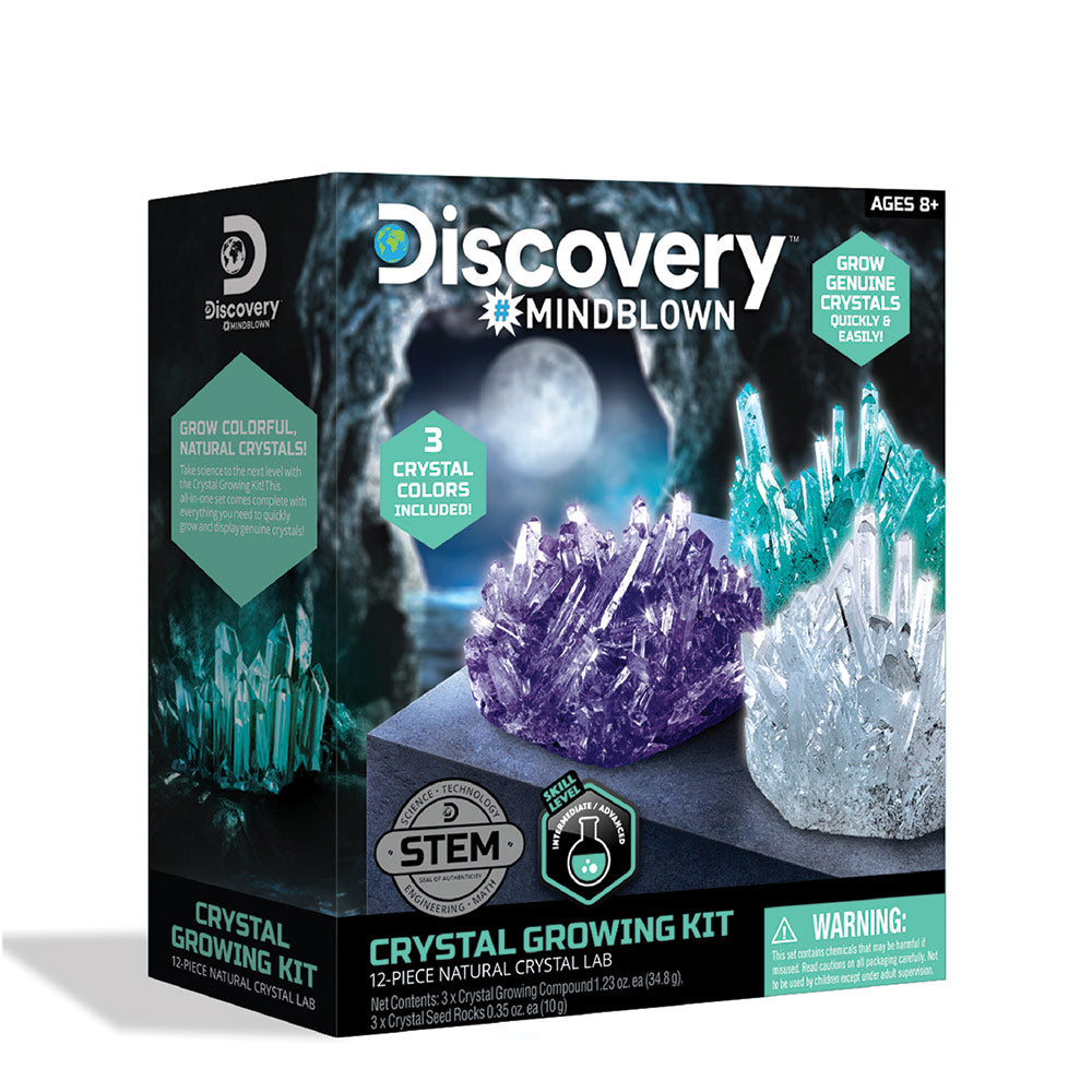 Feel like a real scientist with this at-home crystal growing lab kit! Discovery™ #Mindblown Crystal Growing Kit comes with everything you need to get started — just add water! Soon you'll be growing unique geological formations right in your own home. With the included solution and a variety of mould shapes and colours, you can create a wide assortment of crystal types to dazzle your friends and family. The set is recommended for ages 8+ and is a great way to engage young minds with a fun scientific experiment that doesn’t use screens or devices.