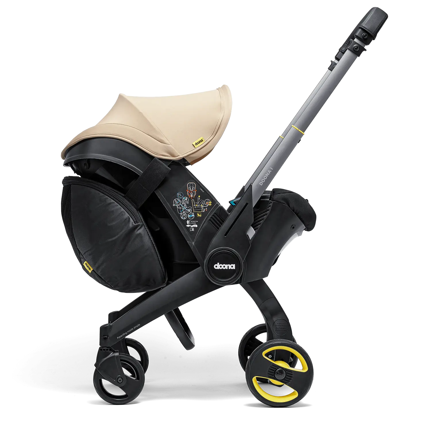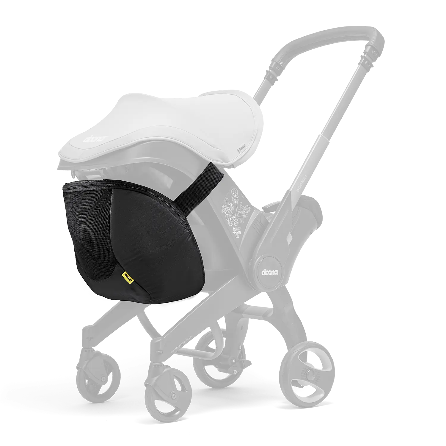 Doona™ Snap-on Storage is designed to provide additional storage when using your Doona™ outside the car. It fits the back of your Doona and maintains its stability. With the unique quick-release Doona connectors, attaching and removing the Snap-on Storage is quick and easy.