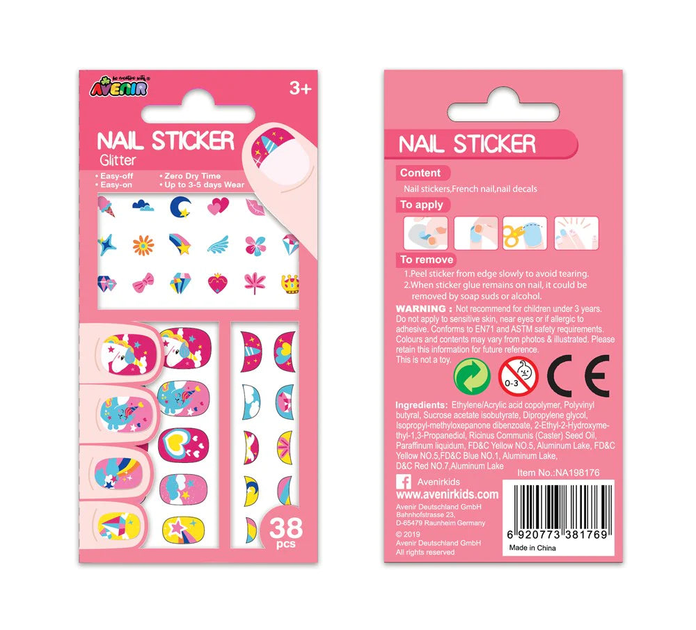 Sparkly nail stickers for kids who love creative play. Designed for little hands ages 3+, they’re safe, gentle, and easy to apply and remove. Mix fun shapes and glittery designs for mess-free makeovers, party favors, or rainy-day activities. Parents approved.
