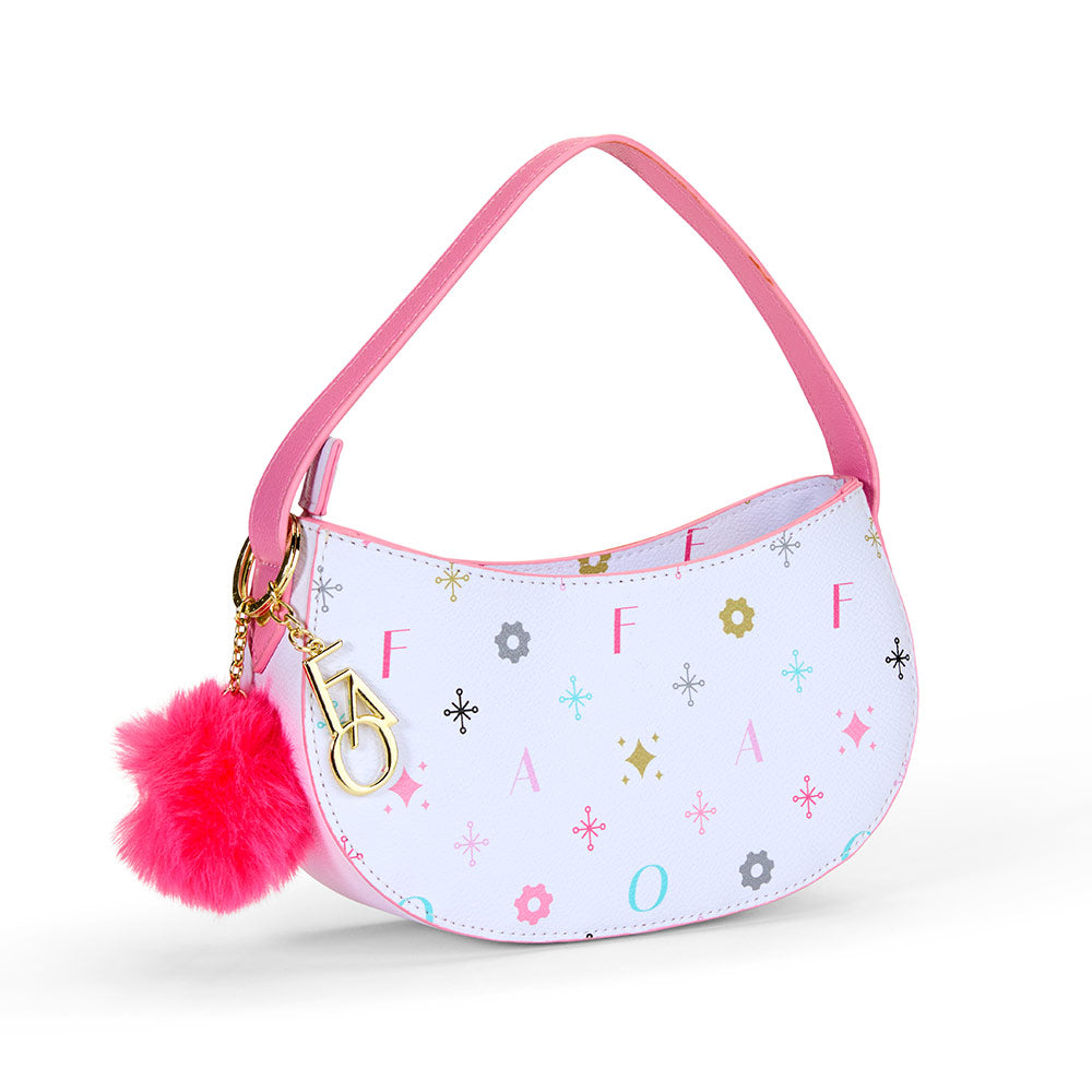 Step out in style with the FAO Schwarz Noho Shoulder Bag! A chic, compact accessory with a crisp white exterior, playful pink accents and whimsical FAO details. Gold-tone hardware and a signature pink pom charm bring a touch of luxe flair. Perfect for fashion-loving girls 4+.