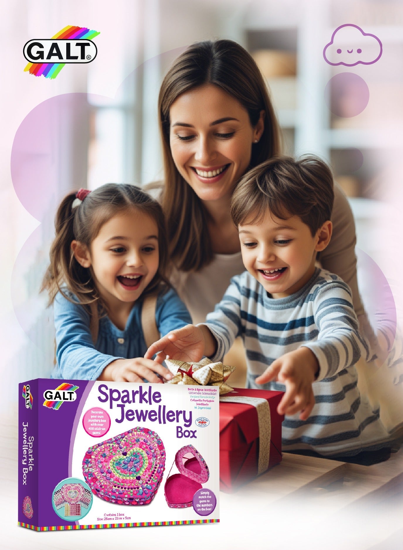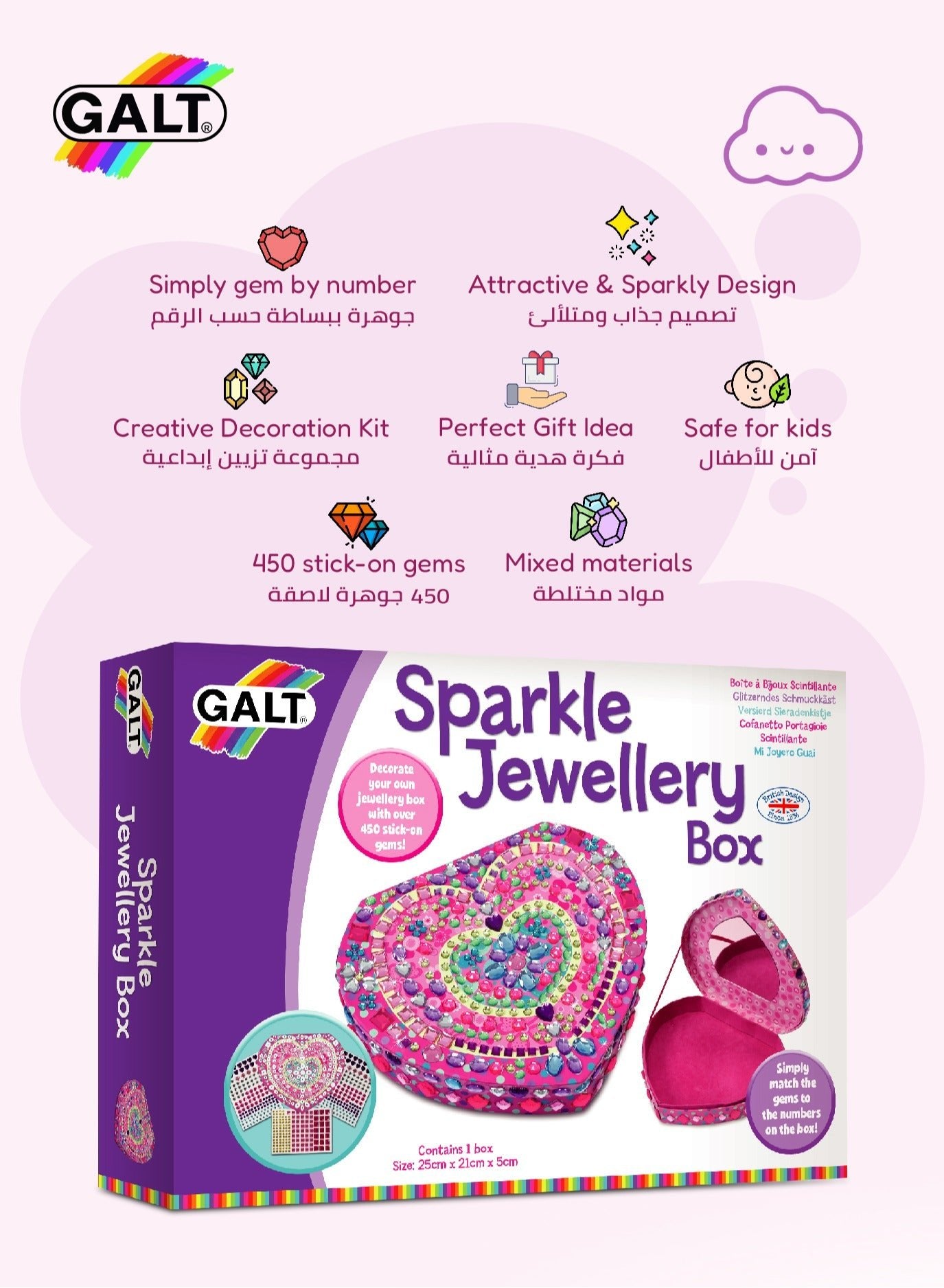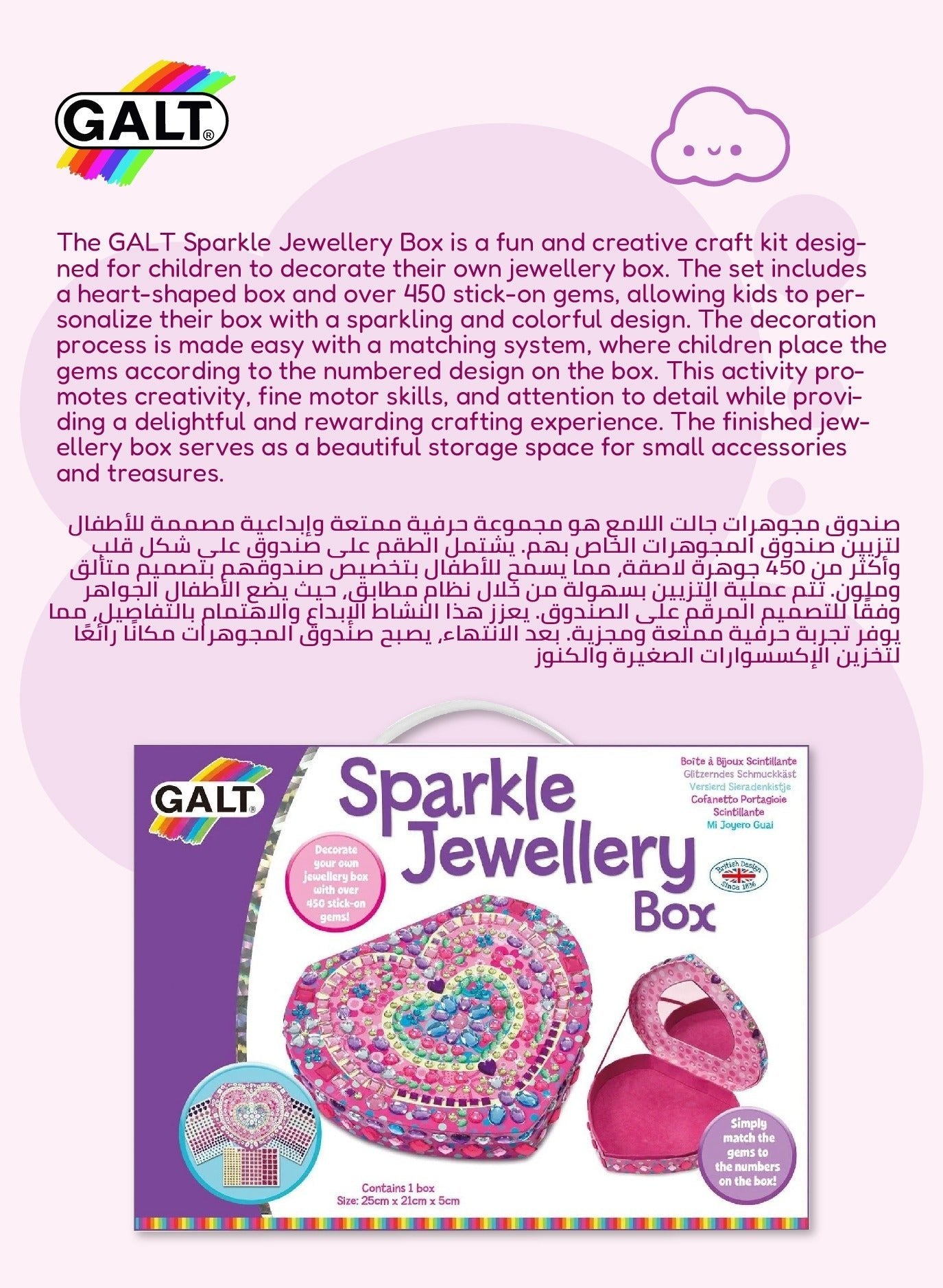 Create a dazzling keepsake with the Galt Sparkle Jewellery Box Kit – a DIY heart-shaped box with over 450 colourful stick-on gems. Galt Toys designed this sparkly craft for kids 6+ who love art, glitter and creative making. Decorate, display and store treasures in a beautiful box they made themselves.