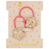 These mini glitter hair elastics by Luciole Et Petit Pois are perfect for girls' daily styling. Sold in pairs, these shimmering accessories add a playful sparkle to any look while providing a comfortable hold for fine hair throughout the day.