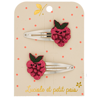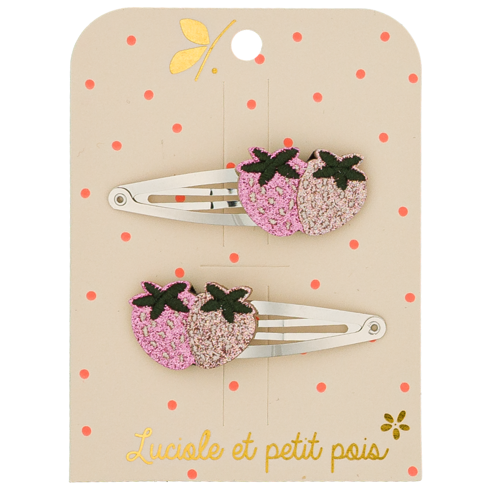 These glittery fruit-themed hair clips by Luciole Et Petit Pois are perfect for girls' everyday styling. Sold in pairs, these shimmering accessories add a playful sparkle to any hairstyle while keeping hair neatly in place for all-day wear.