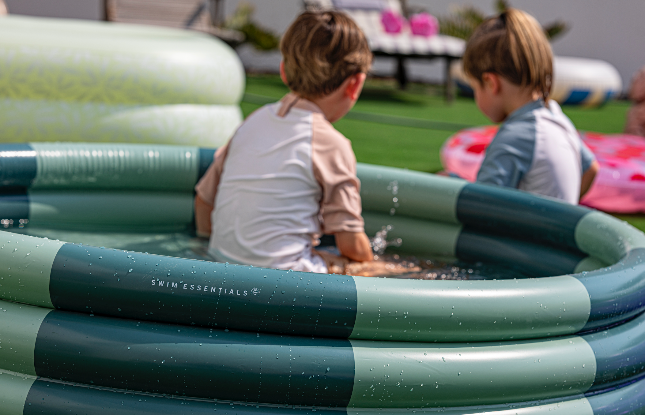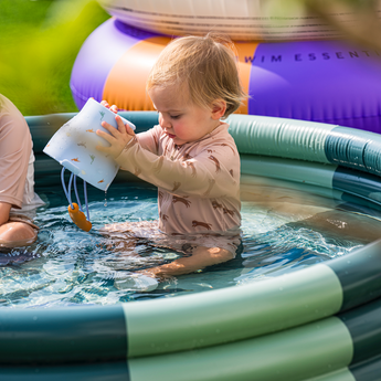 Round inflatable children's pool for parents and caregivers of kids aged 3+. Features 3-ring design in durable PVC (EN-71 tested) for summer play, plus lightweight setup/storage and a repair patch for peace of mind.
