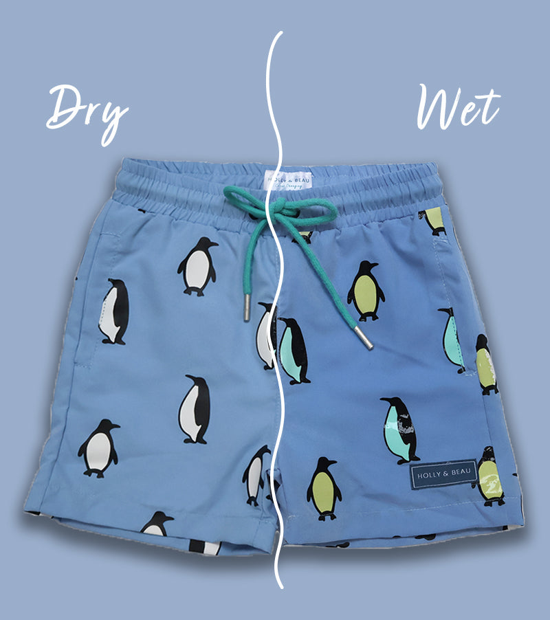 Kids Color-Changing Penguin Swim Shorts — Gift for Boys