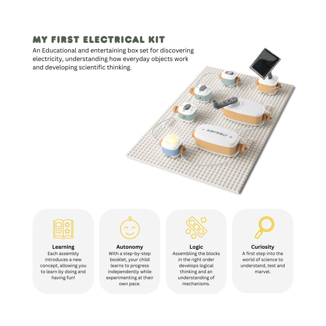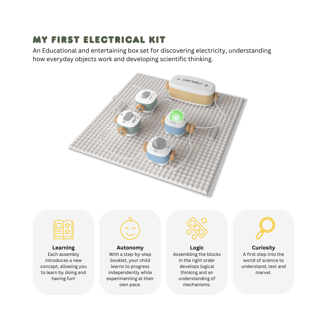 Spark curiosity with the KIDYWOLF My First Electrical Kit! KIDYWOLF created this hands-on STEM educational toy that lets children discover science by building and testing real circuits. Perfect for curious young minds, this KIDYWOLF kit encourages learning through fun experiments and creative exploration. An engaging, screen-free gift that builds problem-solving skills and makes science exciting for kids who love to tinker and explore.