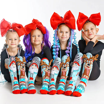 Where is Santa? Where is Santa's Reindeer? Here I am, here I am! Merry Christmas to you all, Ho Ho Ho!! Enjoy your holiday season with our wonderfully festive Christmas Socks, one Sock with Elf & custom-made pom pom and the second one with Santa's Reindeer with custom made antlers.