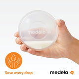 Some mothers may experience milk leakage during or between breastfeeding sessions. Medela Breastmilk Collection Shells are designed to deal with leakage hygienically and discreetly, and collect breastmilk from one breast during breastfeeding. The low profile design allows them to be worn under a Medela bra without being visible and the soft silicone backs make them comfortable to wear for longer periods of time and feature a built in spout to allow easy removal of the collected milk.