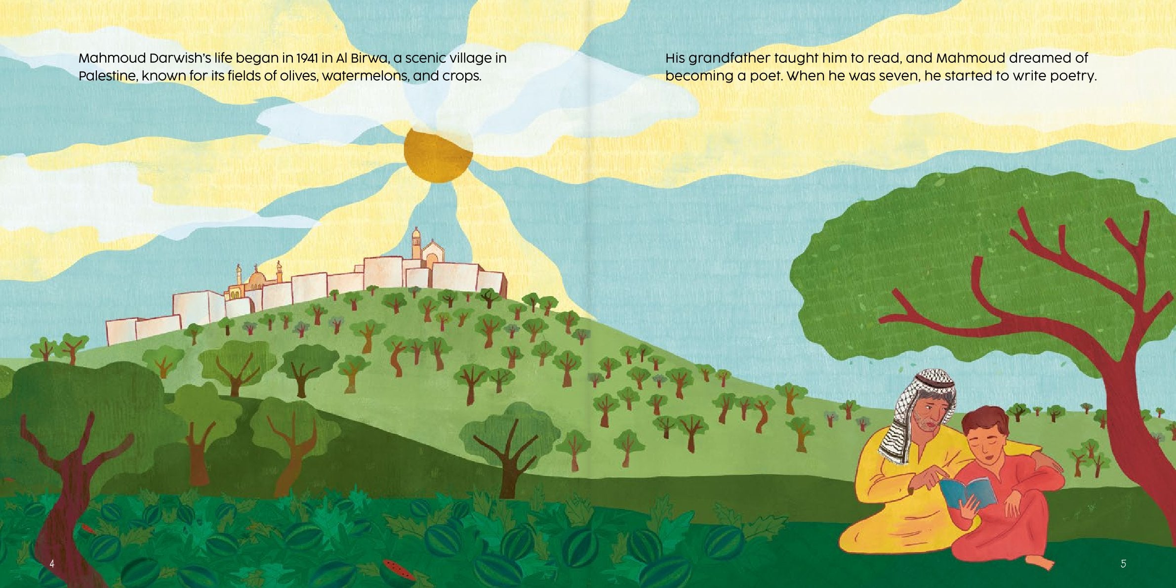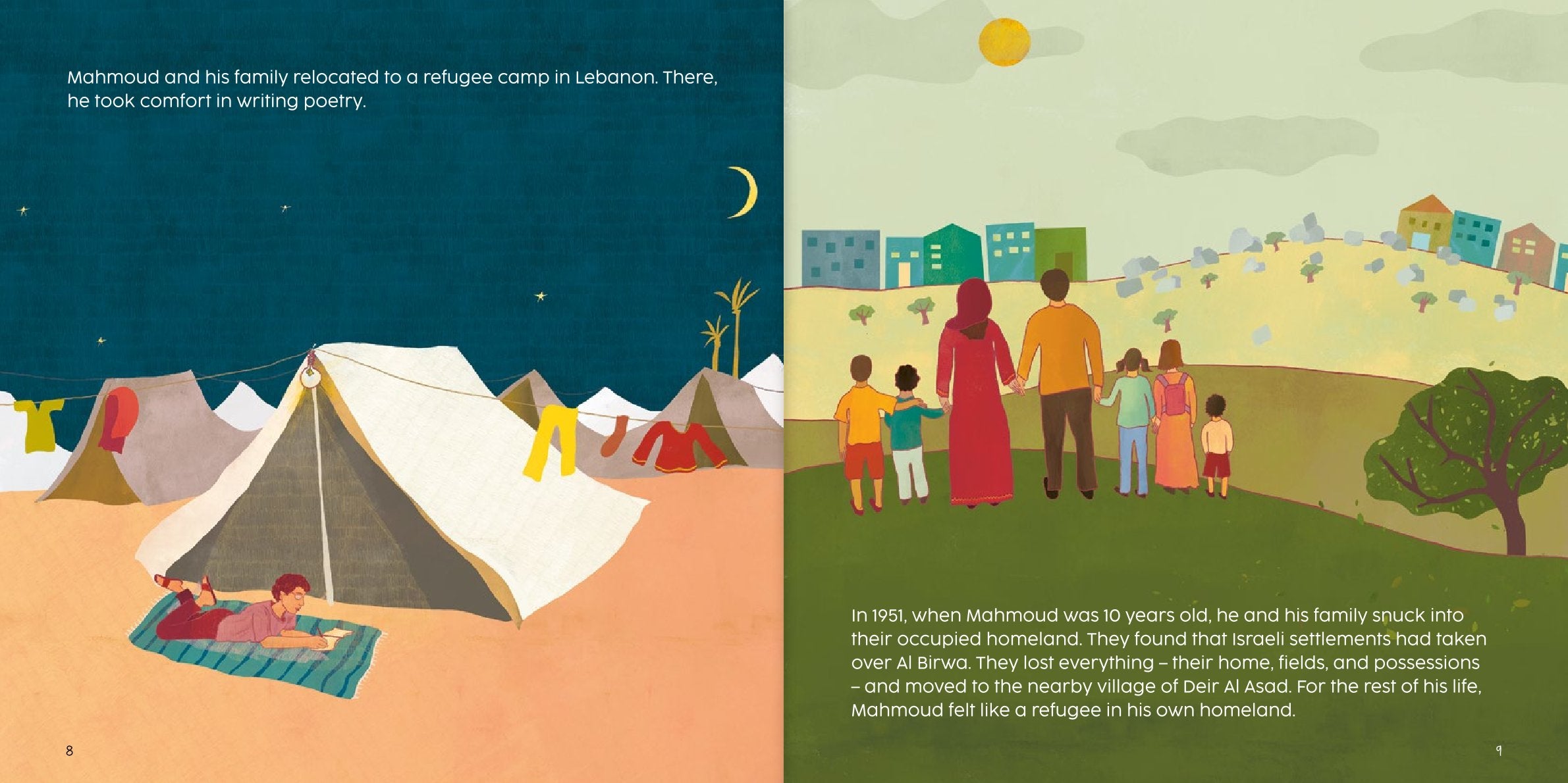 A picture book for young readers (4–8Y) and their caregivers, this story follows a celebrated Palestinian poet, inviting children to explore inspiring Arab role models, hope, identity, and المقاومة من خلال قصص ممتعة ورسوم نابضة بالحياة.