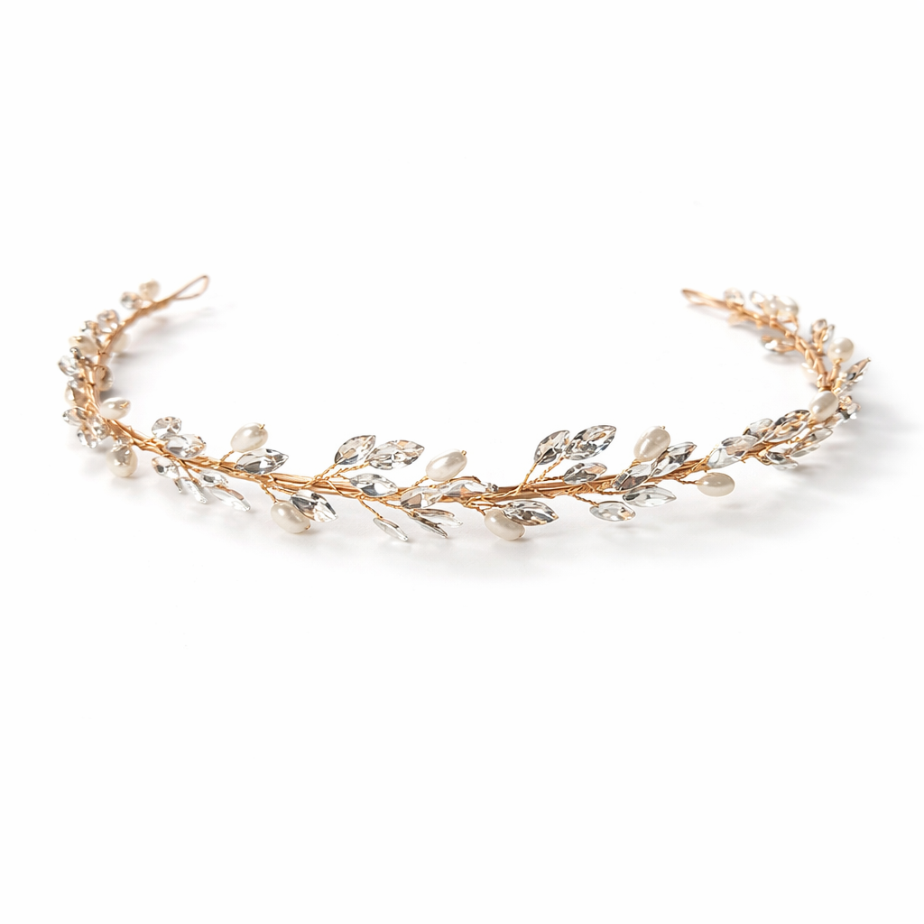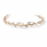 Delicate leaf tiara with pearls and crystals on a gold base. Perfect for weddings and princess moments.