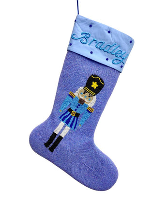 Personalized Blue Beaded nutcracker pink stocking