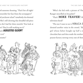 But only five lucky children will be allowed inside. And the winners are: Augustus Gloop, an enormously fat boy whose hobby is eating; Veruca Salt, a spoiled-rotten brat whose parents are wrapped around her little finger; Violet Beauregarde, a dim-witted gum-chewer with the fastest jaws around; Mike Teavee, a toy pistol-toting gangster-in-training who is obsessed with television; and Charlie Bucket, our hero, a boy who is honest and kind, brave and true, and good and ready for the wildest time of his life!