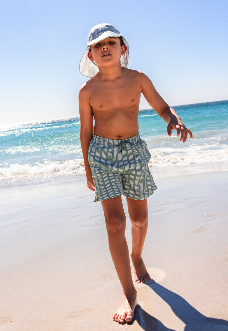 Baby sun swim hat for little swimmers—ideal for parents and caregivers. UPF 50+ protection plus quick-drying, lightweight, breathable fabric with flat-lock stitching helps prevent irritation and covers eyes, neck, and ears.