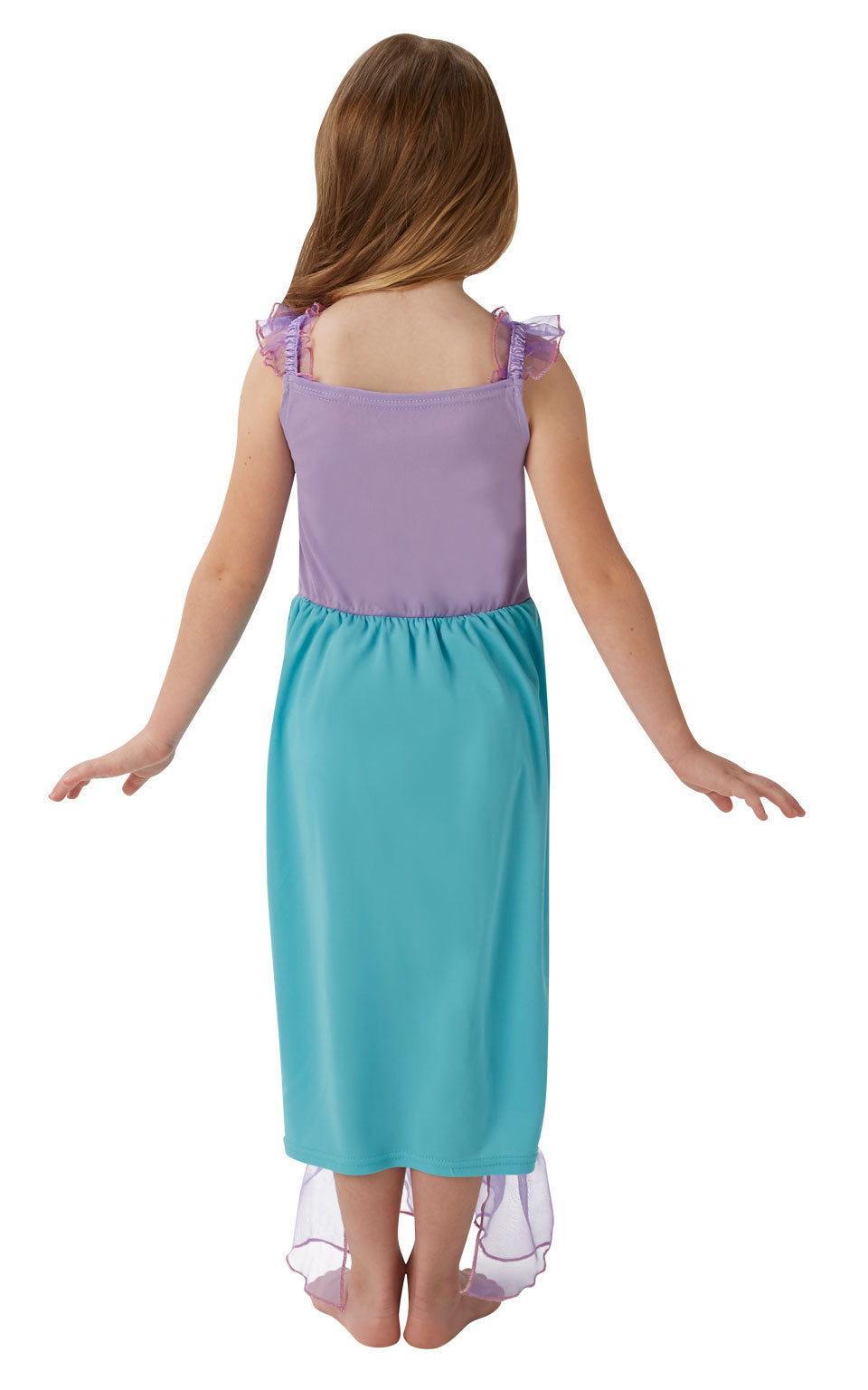 Dive into a world of magic with Rubies' Official Disney Princess Fairy tale Ariel Costume for Girls. This enchanting ensemble, in shades of lavender and aquamarine, captures the shimmering beauty of the sea. Perfect for little mermaids ready to explore both land and sea, this costume promises a fairytale adventure.