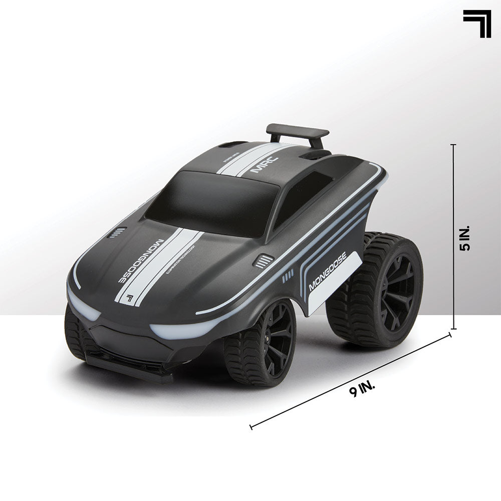 You can hit high speeds on straights and turns, thanks to the grip on the tires of your Stunt Mongoose. The unique design of the Mongoose allows you to spin, jump, and preform awesome stunts with ease. The 2.4 GHz range on your controller allows you to take on your rivals in a race while staying at a distance