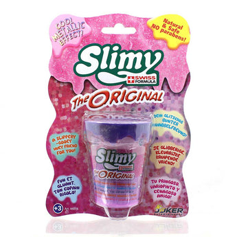 Slimy is a nontoxic, nonirritating polymeric play material. It comes with different properties which not only amuse children and adults but also help in the development of dexterity and creativity. The Swiss Formula logo means the Slimy is produced using a unique formula, that guarantees its quality and safety.