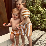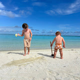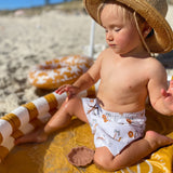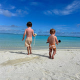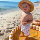 Dive into style and safety with our Trendy & UV-Protected Boy Swim Shorts. Designed with bold prints and a comfortable mesh lining, these shorts offer UPF 50 protection and an adjustable waistband for a secure fit. Perfect for any water adventure, they are durable, vibrant, and pair effortlessly with matching rash guards. Ensure your child enjoys endless summer fun with fashion-forward swimwear that prioritizes comfort and protection.