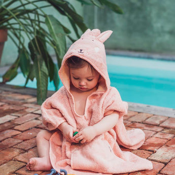 Soft organic cotton poncho for little ones, perfect after bath or swim. Designed for toddlers, it's fun, safe and easy to use - gentle on delicate skin, quick to slip on and cozy for drying and cuddles. Ideal for everyday nursery routine.