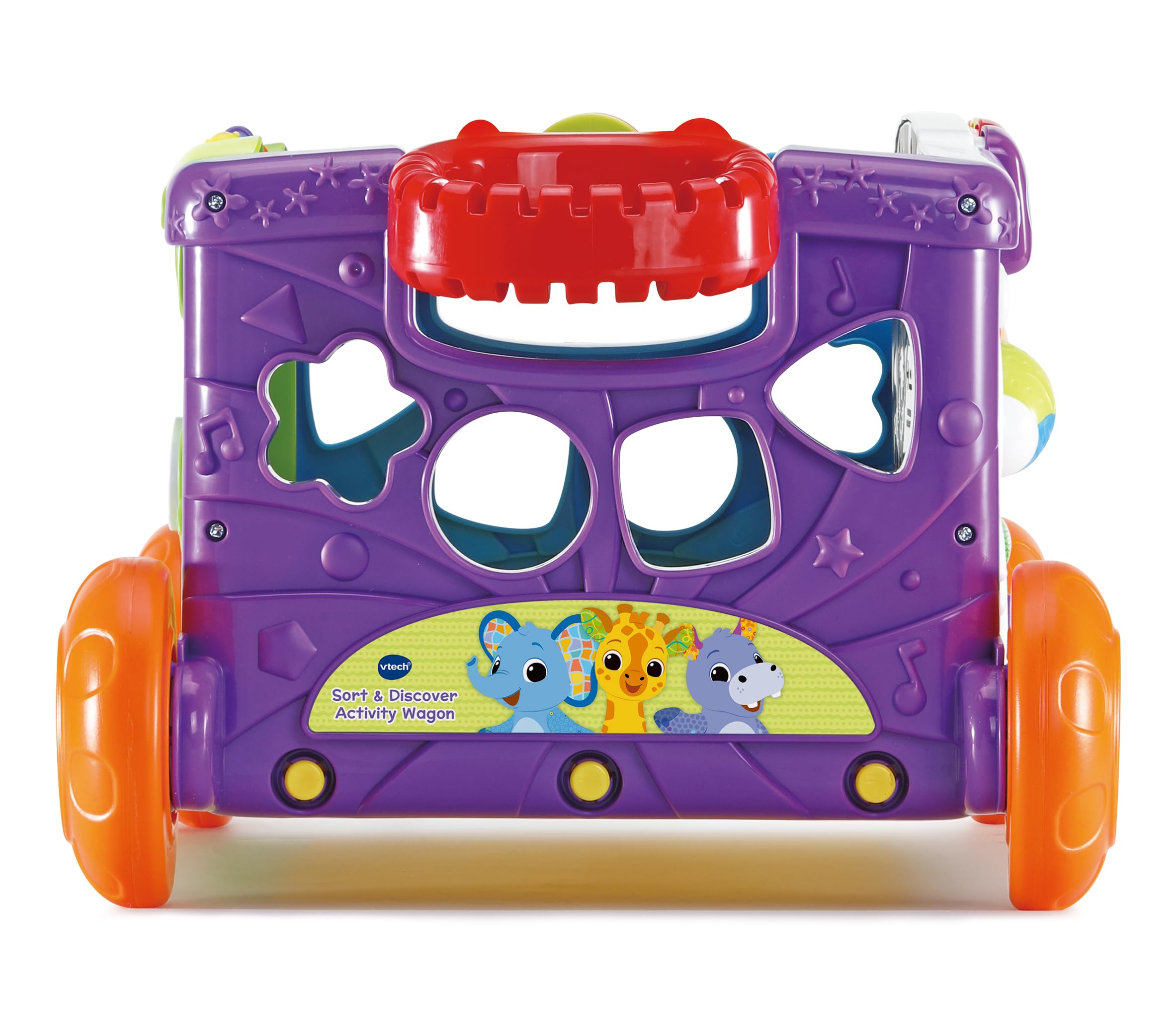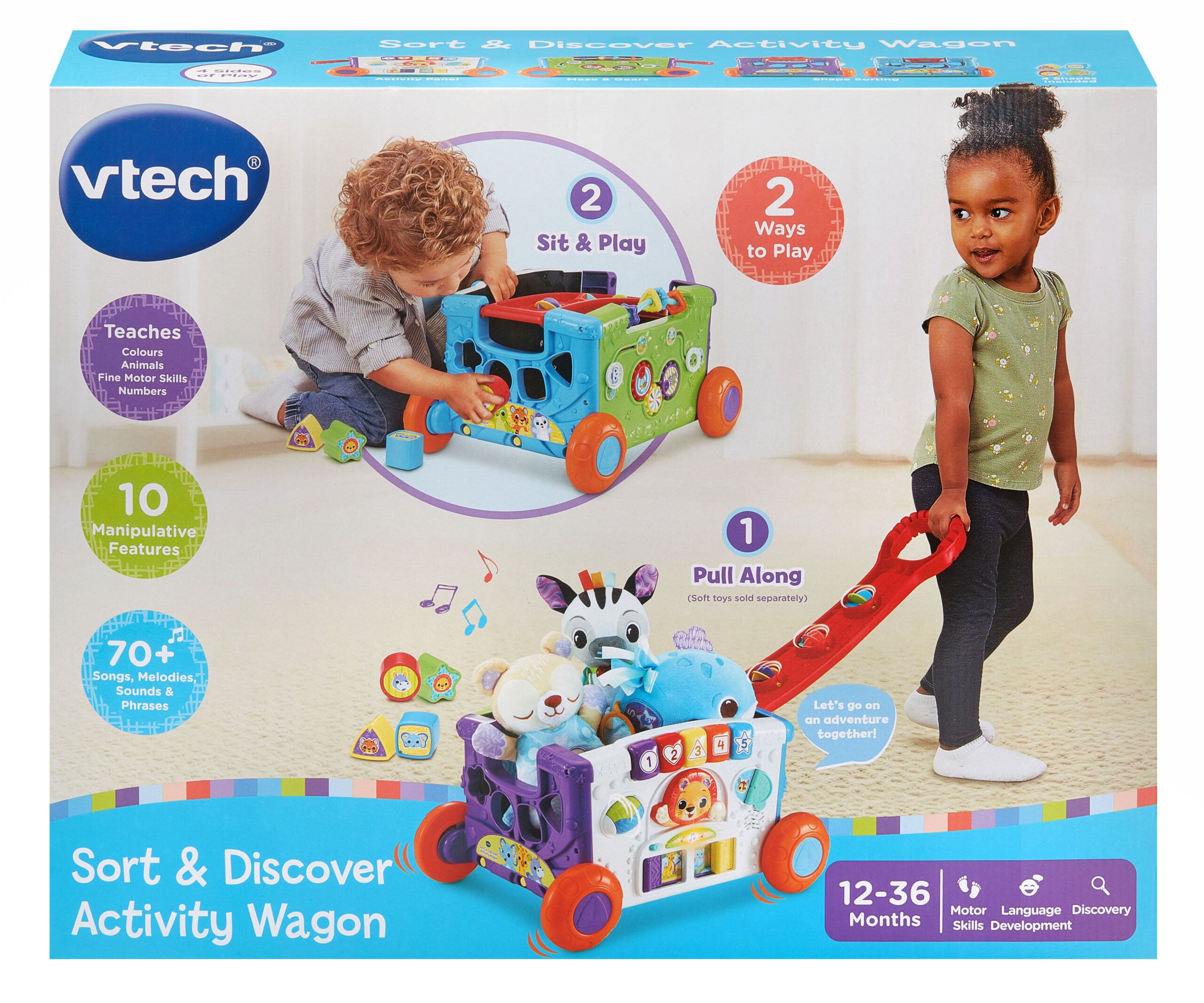 Wagon adventures! The VTech Sort and Discover Activity Wagon is a pull-along learning toy with sorting and discovery activities. VTech designed this versatile wagon for active toddlers. This VTech wagon combines walking support with educational sorting, shapes and discovery games for fun on-the-go learning.