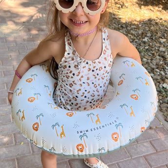 Inflatable swim ring for children aged 3+—ideal for parents and caregivers for pool or beach days. Durable PVC (EN-71 tested) with reliable float support, holds up to 50 kg, and includes a repair patch for quick fixes.