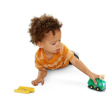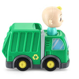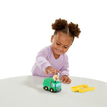 Help JJ keep the town clean and beautiful with the CoComelon™ Go! Go! Smart Wheels® JJ’s Recycling Truck & Track. JJ’s job is to collect waste and reuse it! Give him a tap on the head to hear his voice and songs about sorting trash and recycling. Anything recyclable? Explore cause and effect by driving JJ over the SmartPoint® picture on the track piece. This SmartPoint® location lets JJ play more sounds and phrases that immerse little ones in a world of pretend play. JJ’s Recycling Truck & Track are part of a closed-track system. Add other CoComelon™ Go! Go! Smart Wheels® characters and playsets (each sold separately) and play together with family and friends. Let's help the earth! Intended for ages 1.5+ years. Requires 2 AAA batteries. Batteries included for demo purposes only. New batteries recommended for regular use.